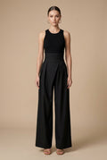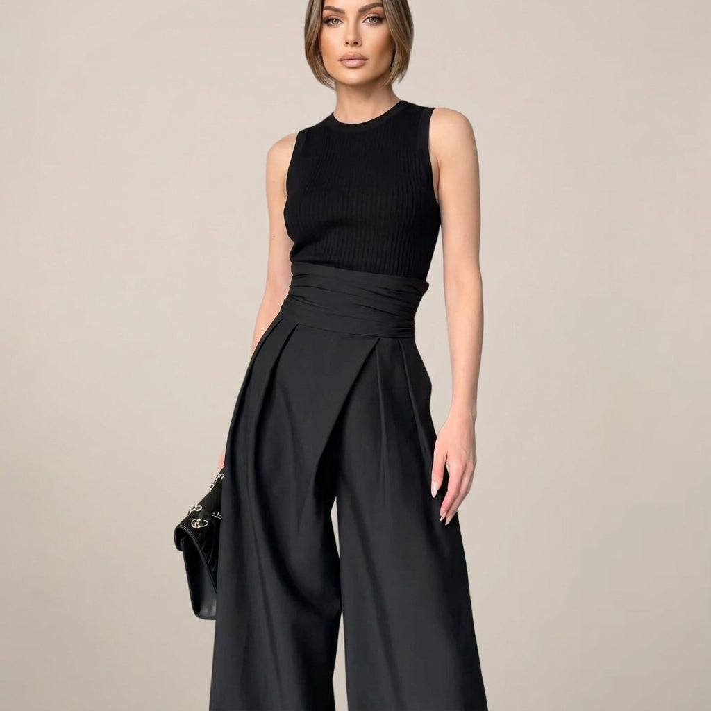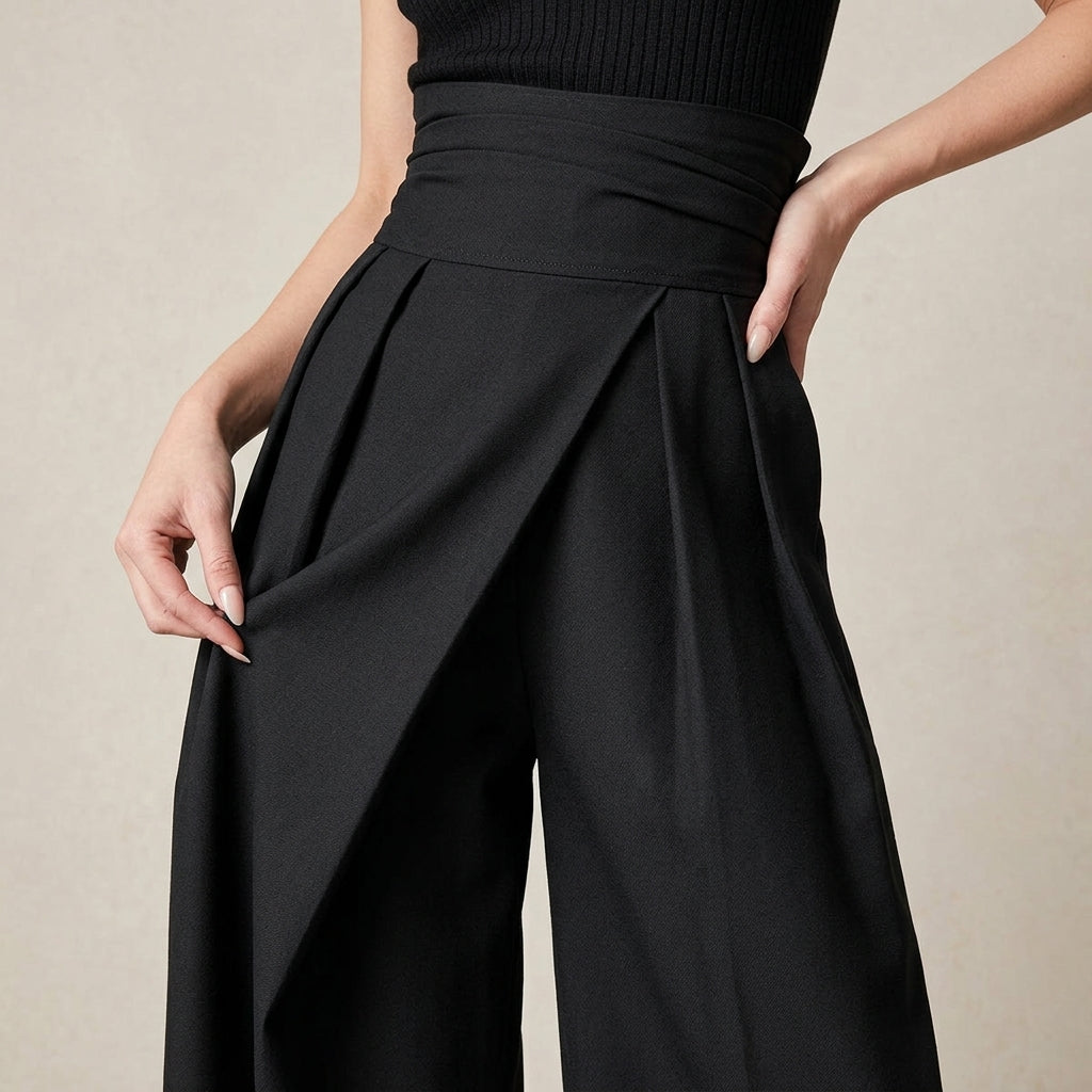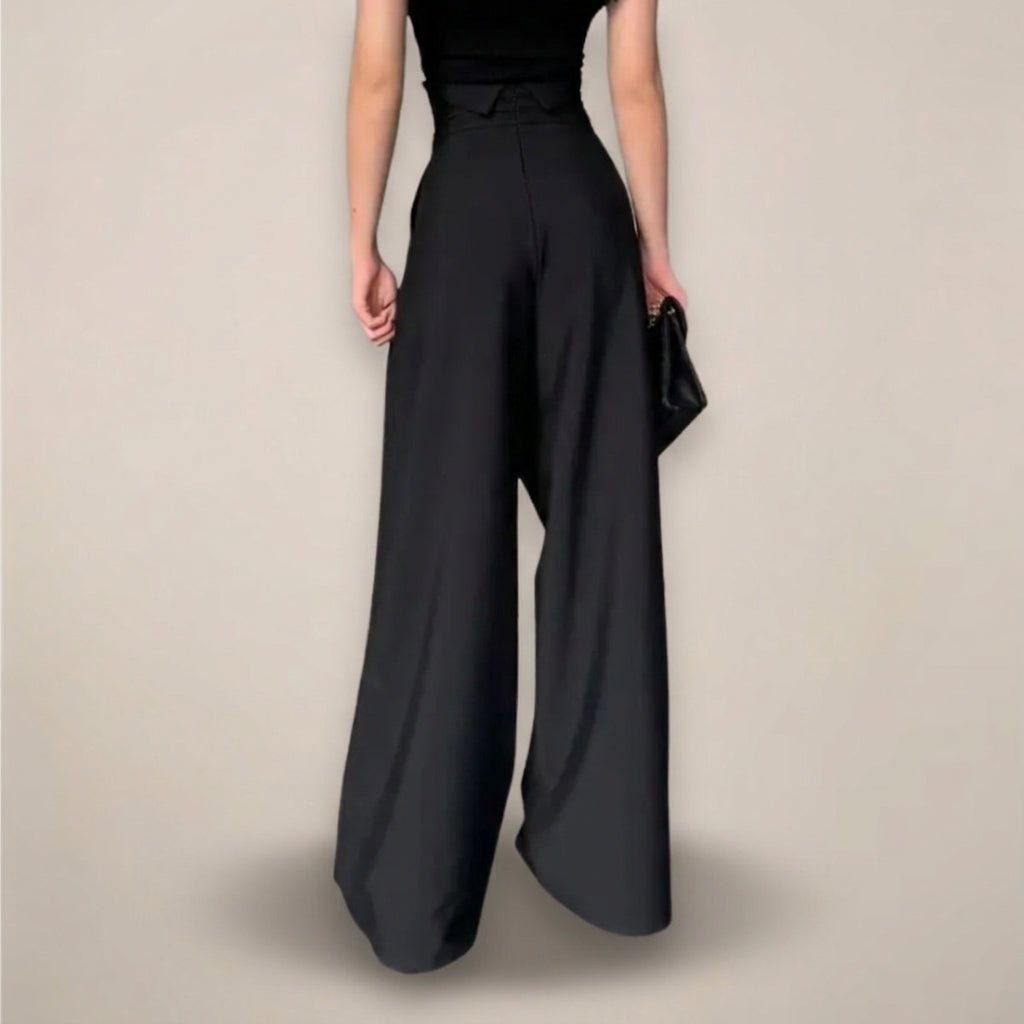 Women’s High-Waisted Wide Leg Trousers – Elegant Black Tailored Fit